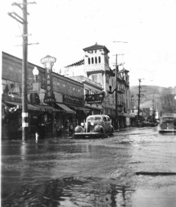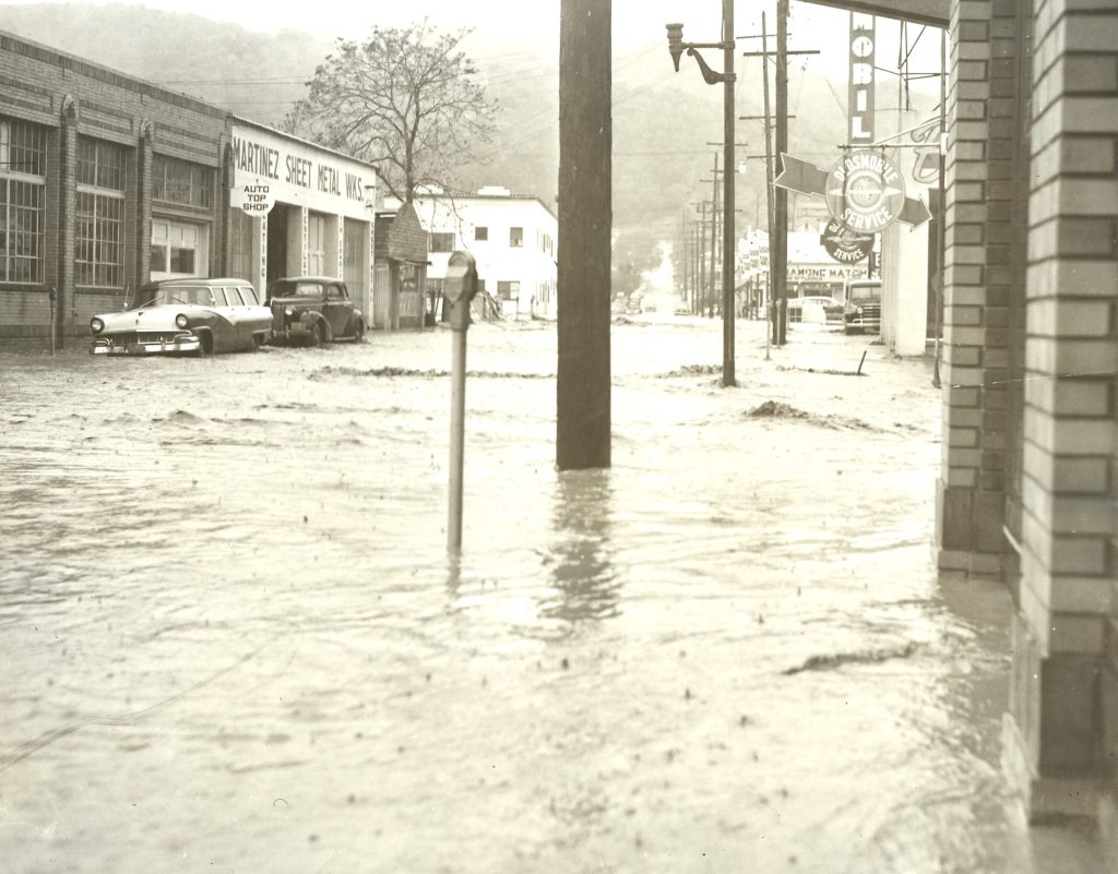 Another flooding event occurred in Martinez in late February of 1940. The February 28th issue of the Contra Costa Gazette reported thousands of dollars in damages and property loss after the downtown streets were flooded once again. Several families were forced to evacuate their apartments on the ground level floor of the Mission Court Apartment building.