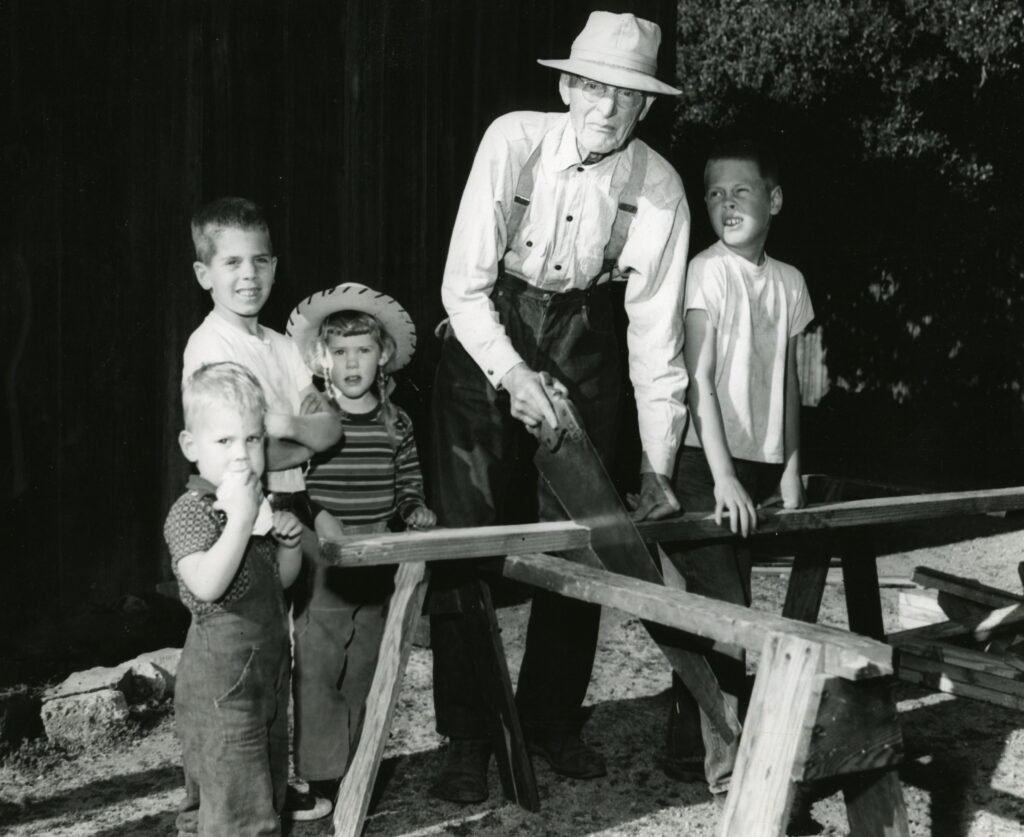 George Griffin stopped a task very briefly for this picture taken with four of his grandchildren not long before his death in 1958. Pictured are Tom and Jane Griffin’s children, from left, Robert, Steven, Alice and Peter Griffin on the family farm established by the children’s great grandfather Thomas Griffin in 1868.