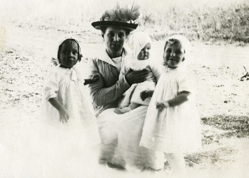 George and Jessie Dukes Griffin show off their third and fourth children, fraternal twins Elizabeth Cary and Thomas Haughton Griffin sometime not long after their birth in July, 1912. No one expected twins including Doctor E. L. Merrithew who arrived late with only one birth certificate. Father George delivered the twins himself.