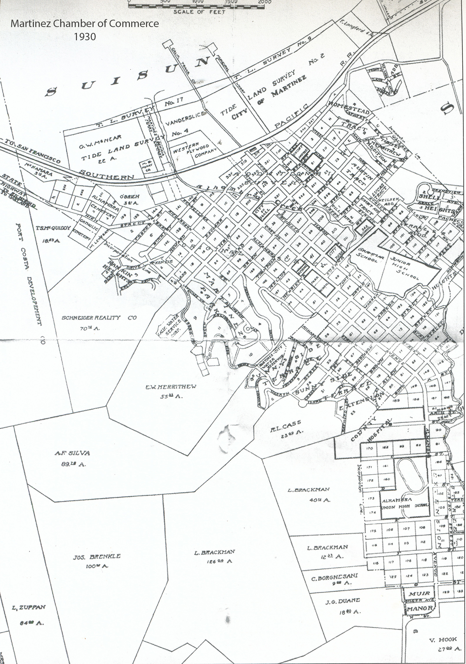 In late November, 1920, the Martinez Chamber of Commerce’s Street Numbering Committee presented the Board of Trustees with a permanent plan for street numbering. It proposed that numbers for the north/south streets begin at the waterfront. The east/west numbers would start on the west side of town. (ED. NOTE: That is why Green Street’s western most properties today have numbers starting with 0 as the Chamber’s plan did not consider the possibility of more westward development there).